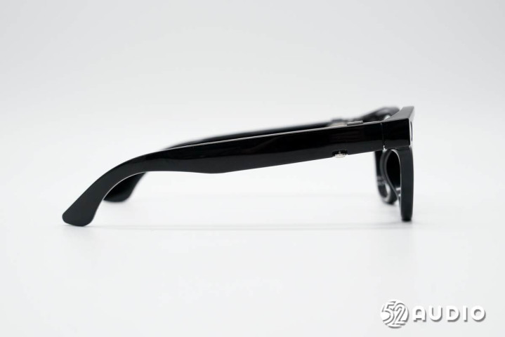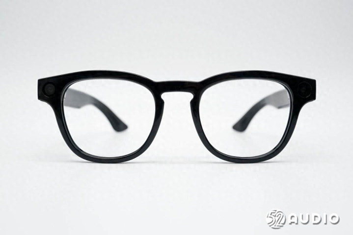 Looktech AI智能眼镜在外观设计上,采用经典黑框设计,经钢琴烤漆工艺处理,时尚且富有质感。镜框右侧设置有明显的摄像头,左侧对称式设置了指示灯,镜腿上设置有功能按键以及银色品牌LOGO,鼻托则采用了一体式设计。眼镜整个框架采用超轻材质,搭配钛合金铰链,整机重量仅34.6g,佩戴舒适。